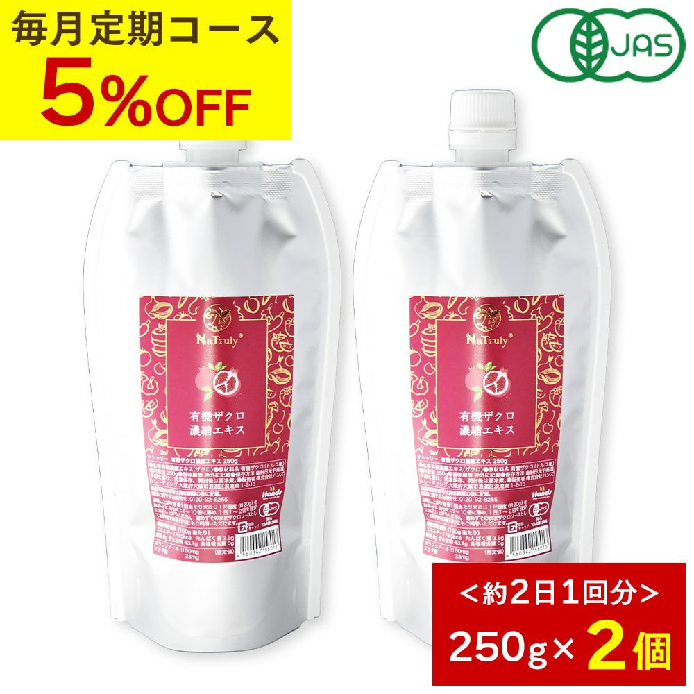 他の画像を見る ★通常価格より5%OFF★ 【定期購入】ナトゥリー 有機ザクロ 濃縮エキス 250g 2個 10倍濃縮 ザクロジュース NaTruly(ナトゥリー) メール便対象 定期販売 1回あたり ¥ 2,770 税込 詳細を見る お気に入りに登録する