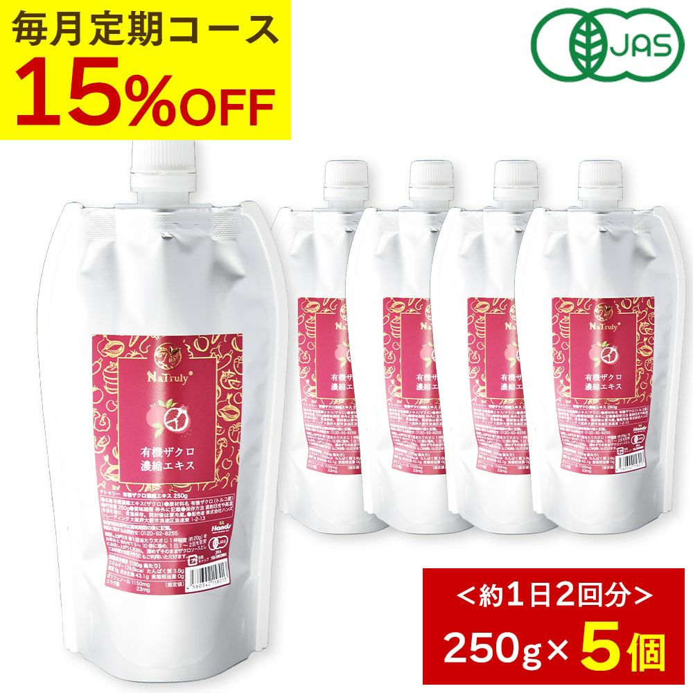 他の画像を見る ★通常価格より15%OFF★ 【定期購入】ナトゥリー 有機ザクロ 濃縮エキス 250g 5個 10倍濃縮 ザクロジュース NaTruly(ナトゥリー) 定期販売 1回あたり ¥ 6,197 税込 詳細を見る お気に入りに登録する