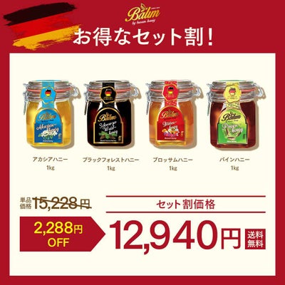 | セット内容 | ブロッサムハニー、アカシアハニー、ブラックフォレストハニー、パインハニー |