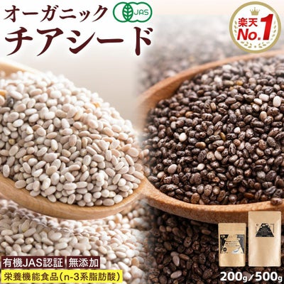 有機JAS認証のチアシード。ホワイト200gかブラック500gを選択できます。