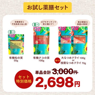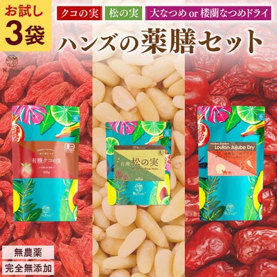 クコの実と松の実と大なつめのお試しサイズ3種類を詰め合わせ。お試し薬膳セット