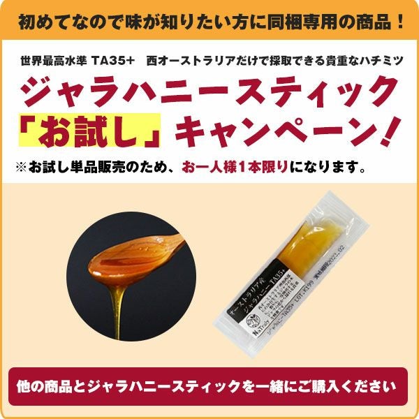 他の画像を見る \★送料無料★/ プレミアム アクティブ ジャラハニー TA35+ スティックタイプ 5g×10本セット NaTruly(ナトゥリー) メール便対象 希望小売価格 ¥ 1,458 のところ 本店特価 ¥ 1,350 税込 詳細を見る お気に入りに登録する